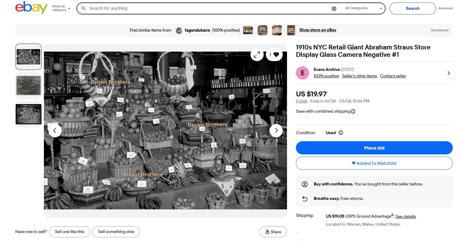 Daniel D. Teoli Jr. Posted February 27 Posted February 27 Screenshot 02-27-2026 08.42.311145×884 201 KB Over the years I bought a few photos from this seller for my archive. But it is just too $$ now. They keep raising the shipping to crazy prices. Shipping is almost the same as the price of the minimum bid. Add sales tax and you are in the low $40s for 1 photo. Now some photos may be worth it. But most of theirs are not worth that much to me. The last photo I got from them was an interesting glass plate with a bunch of people in an old general store that looked to be in Alaska, and they brought a horse into the store. I have to scan it sometime. Right now, been working digesting 4 -5 feet of old mags to breakdown. Usually not a big deal to scan things, but I have to pull out a special scanner that is in storage that can handle 8x10 glass plates. It would be nice to have an archive with equipment all set up and you walk up to it and can just do your work. Even have a mold room where you can work with moldy material like the toxic waste that it is. Some of the material an archive gets is moldy and sometimes it is just not replaceable. So, you deal with what you got when it comes to digitizing it. If you do have moldy material to digitize you can microwave it. But you have to be careful about burning it. I’ve done lots of work with it…moldy material seems to find me. All the old stores had crates, barrels, glass, ceramic and baskets for their food. No plastic back then. I don’t know if this is a display to sell fruit or just set up to take the photo. It doesn’t look too practical for customers to pick fruit. Although back then I think you asked for what you wanted and the storekeeper got it for you. I’ve seen a lot of old-time bananas. All the bananas I see in the photos look kinda nasty. The bananas have changed over the years due to varieties dying out from disease. The bananas we eat now are low quality compared to the bananas we had when I was a kid. They were tasty as hell back then. But that variety is no longer sold. It died out. I don’t know if it died out 100%, but it died out enough from disease to not be commercially sold. You check it out. <><><><> Daniel D. Teoli Jr. Archival Collection Daniel D. Teoli Jr. Small Gauge Film Archive Daniel D. Teoli Jr. Advertising Archive Daniel D. Teoli Jr. VHS Video Archive Daniel D. Teoli Jr. Popular Culture Archive Daniel D. Teoli Jr. Audio Archive Daniel D. Teoli Jr. Social Documentary Photography