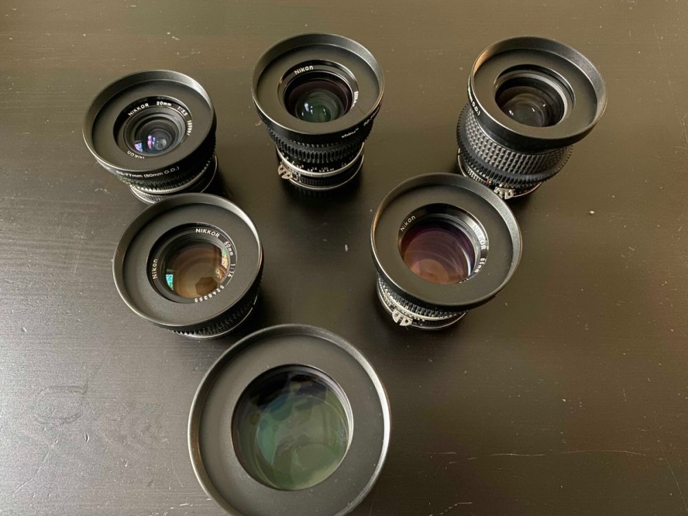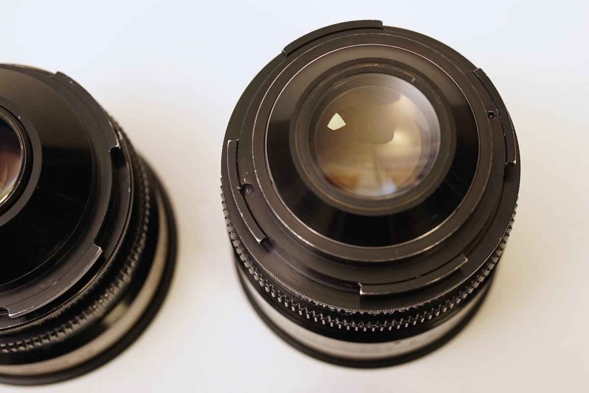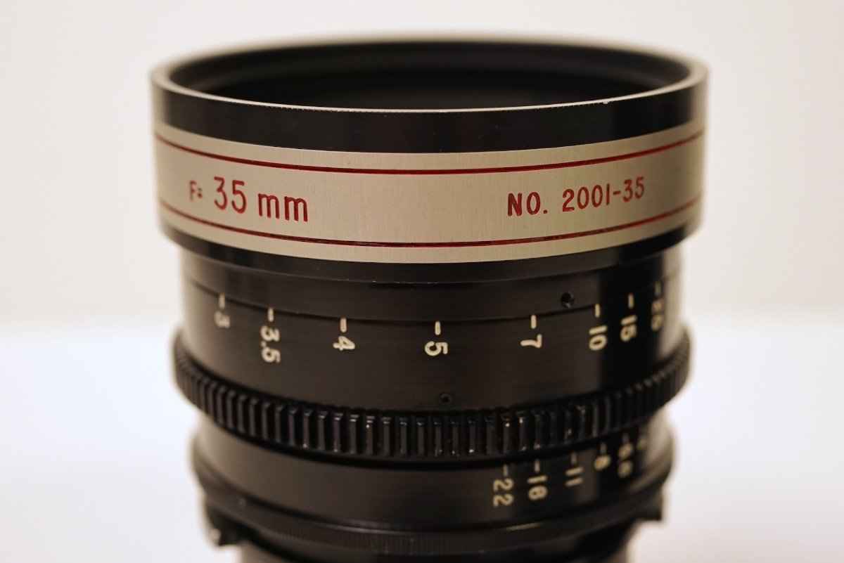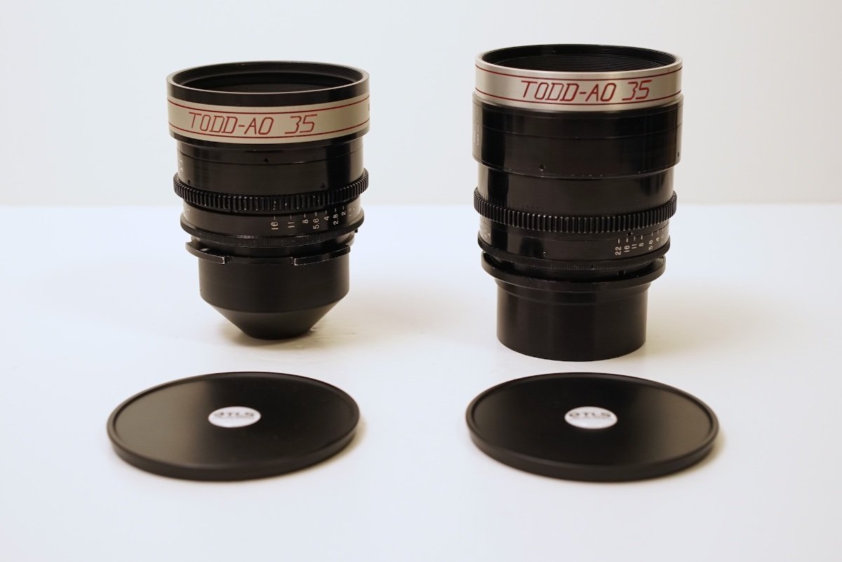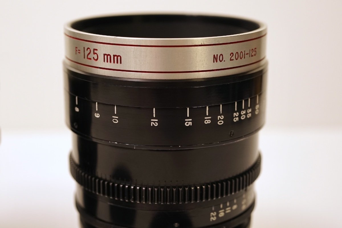These two lenses were first shared on this forum a few years ago by the previous owner, but since they have been recently serviced by TLS, ready for use, I thought I would reshare them in case anyone has insight into their history and usage? Unlike the majority of Todd-AO 35mm lenses, these are spherical prime lenses on Mitchell BNCR mount, with greater than FF/135 coverage. Both are marked with serial no: 2001 and the branding "Ultra-Fast". They have integrated gears, 90mm frontages, they do extend during focusing and they have dual Tstop and Fstop scales. The 35mm T1.5 is a rehousing of the first generation Nikkor-N 35mm f1.4. This was easy to confirm as the characteristic 9 bladed aperture was retained and optics had yellowed considerably due to thorium decay. The glass was treated with UV by TLS as part of the servicing and the colour balance is now correct. The 125mm T1.7 is a bit of a mystery. Having spoken to Zero Optik, their suggestion was the lens uses rehoused projector optics, which would make sense as Dr. Richard Vetter did provide projector optics to Ed DiGiulio of Cinema Products, to create additional focal length for Kubrick based on the Zeiss Planar 50mm 0.7. There is virtually zero information on these lenses or the range anywhere online and I am curious if anyone has any insight into their history. Were there more focal lengths in the range? What movies were they used on? Given that the Nikkor-N 35mm f1.4 with thorium coatings was first released in 1970 and only made for about a year, that helps to place when the lenses were made, but very little else. I've seen some suggestion these lenses were later Todd-AO 65mm lenses, but both are marked "Todd-AO 35" and to my knowledge Mitchell BNCR was never used on any 65mm camera system.