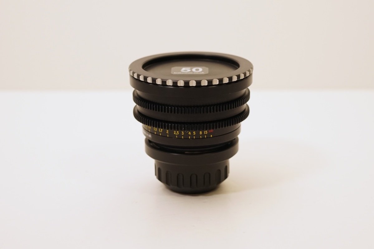 Cooke Kinetal 50mm T2 Arri PL mount cine lens. The lens was designed for S16 film cameras, but the image circle is large enough to cover S35 and almost (with a slight vignette) FF/135 cameras. Rehoused by British lens technician Les Bosher, the housing is smaller and more compact than those made by TLS. The lens has integrated gears for focus and aperture, a Arri PL mount and a 95mm frontage. The optics are clean and bright with no haze, fungus or separation. There are faint cleaning marks to the front and rear optics, as is to be expected with a lens of it's age. There is some very minor play in the housing (standard for a Les Bosher lens) but the focus and aperture operate as expected. Price: £2350 (no VAT for a UK sale). The lenses ship worldwide from the UK at cost.