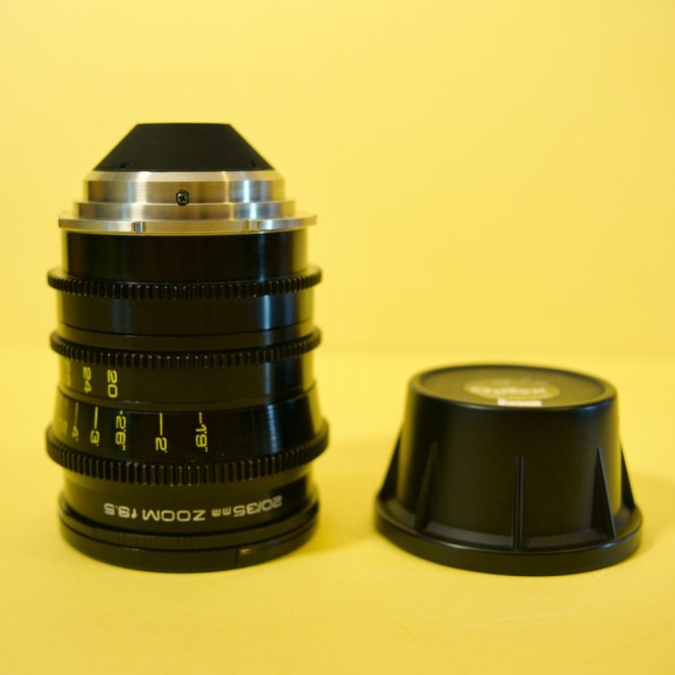 Optex rehoused Canon FD 20-35mm T3.5 cinema zoom lens Mitchell BNCR mount A very rare compact cinema zoom lens, dating from the 1980s, used to expand Canon K35 lens sets. The optics are bright, clear and clean and the mechanics, while of the time are excellent and smooth. Recently serviced by Duclos lenses in the US. The lens was dis-assembled completely, all components cleaned. Sprayed and baked worn parts. The zoom, focus and iris all re-lubed. Cleaned and aligned accessible optics. Re-collimated. The lens rehousing has 77mm front filter threads. I added a Simmod knurled 77mm to 80mm front step-up ring and custom push on lens cap. Can be adapted for use on any mirrorless mount camera or Canon EF. Comes complete with front and rear caps. Optics presently cover a S35 sensor. It might be possible to increase the coverage by removing the rear cowl. Price: ÂŁ4000 Ships from the UK at cost (buyer pays all shipping and necessary insurance).